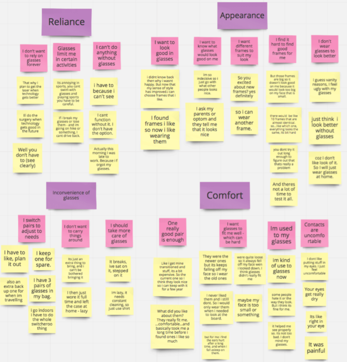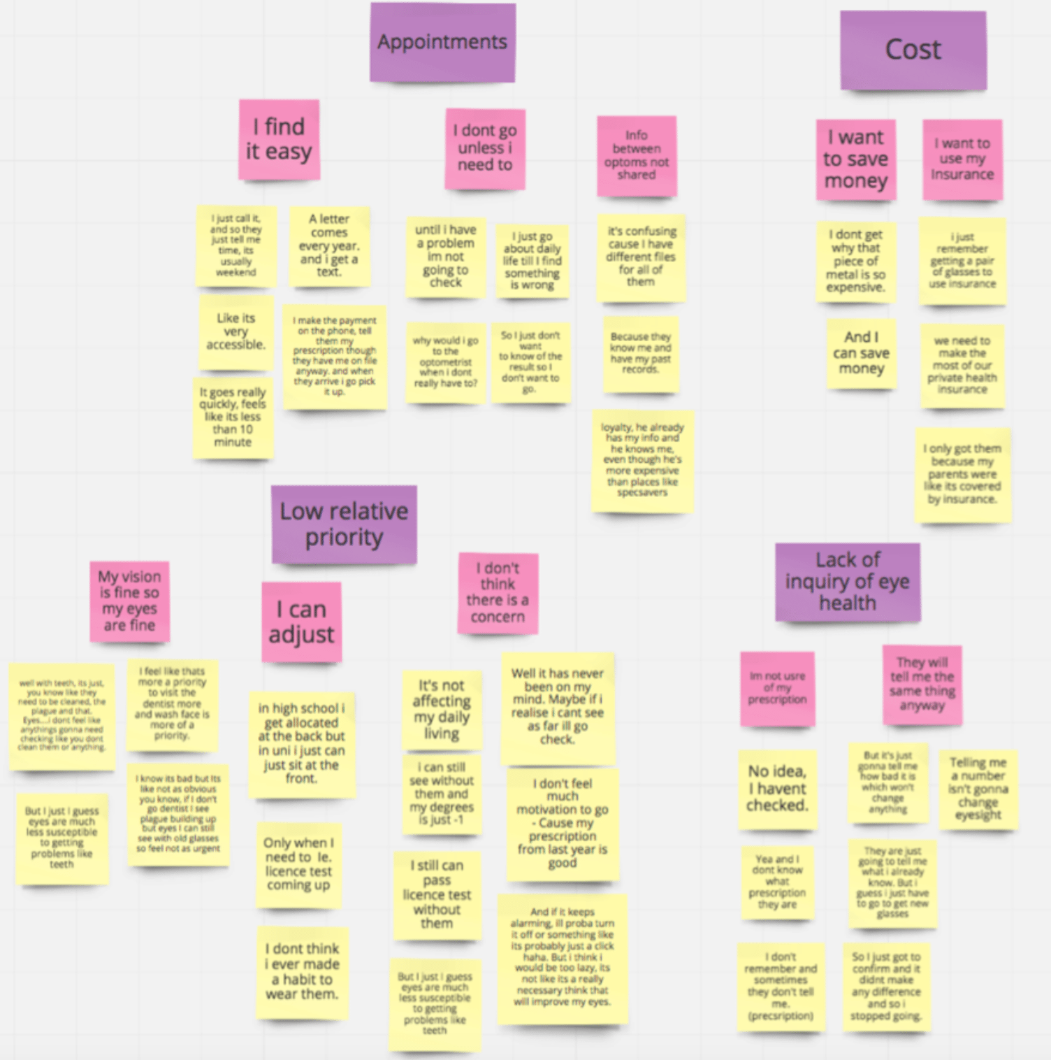 As the data collected on "Eye Health" was quite broad, our Affinity Diagram revealed 3 main areas of knowledge that we were able to gain: