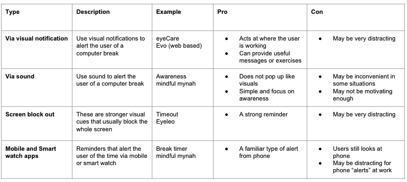 Usage environment: Office and Home where users spend many hours at a time with computer screens