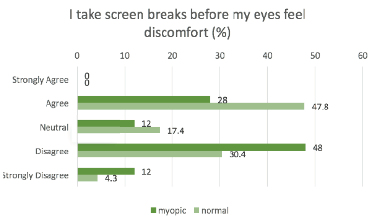 A total of 61 responses were obtained (44% Normal Vision, 56% myopic)
